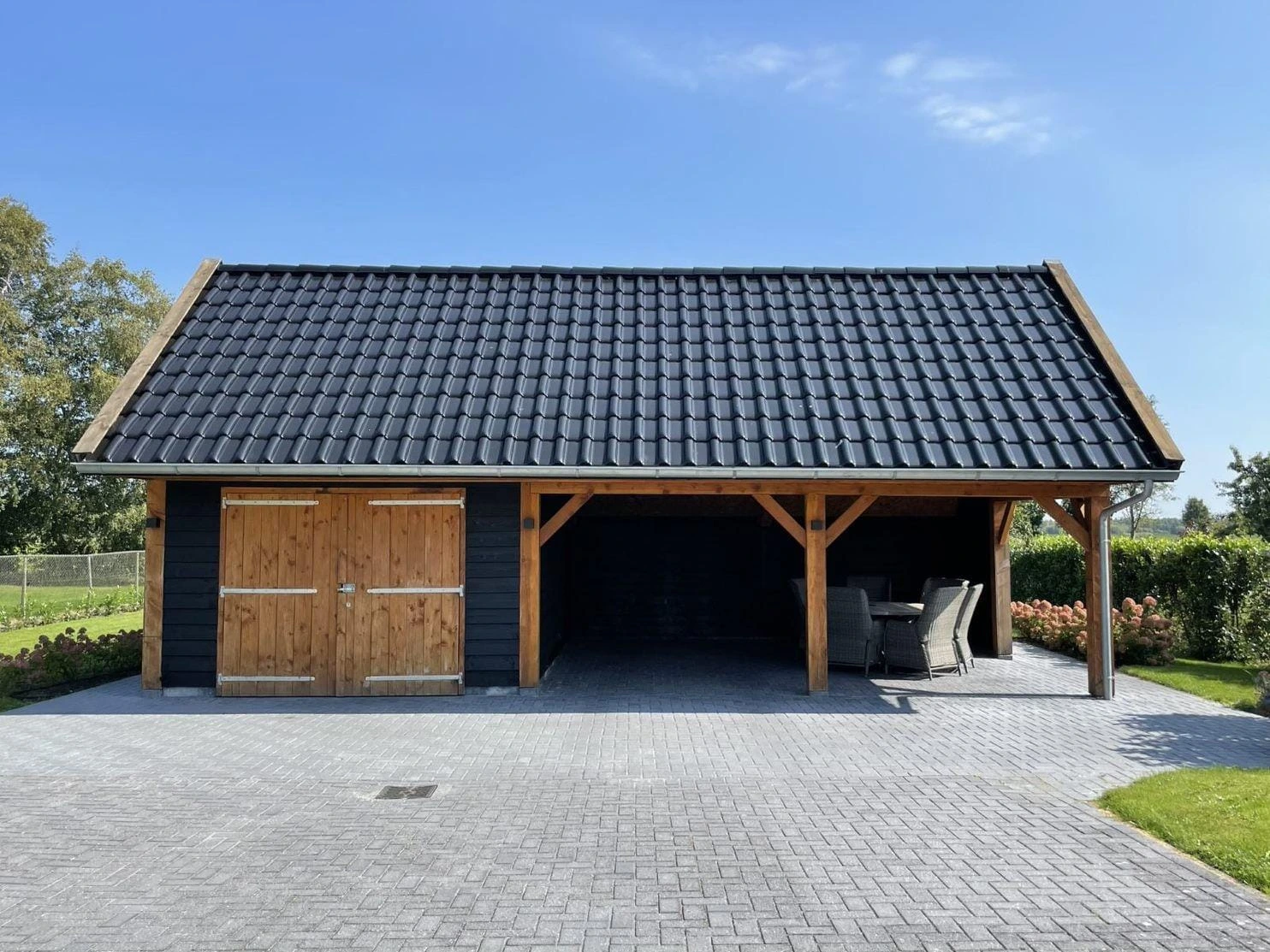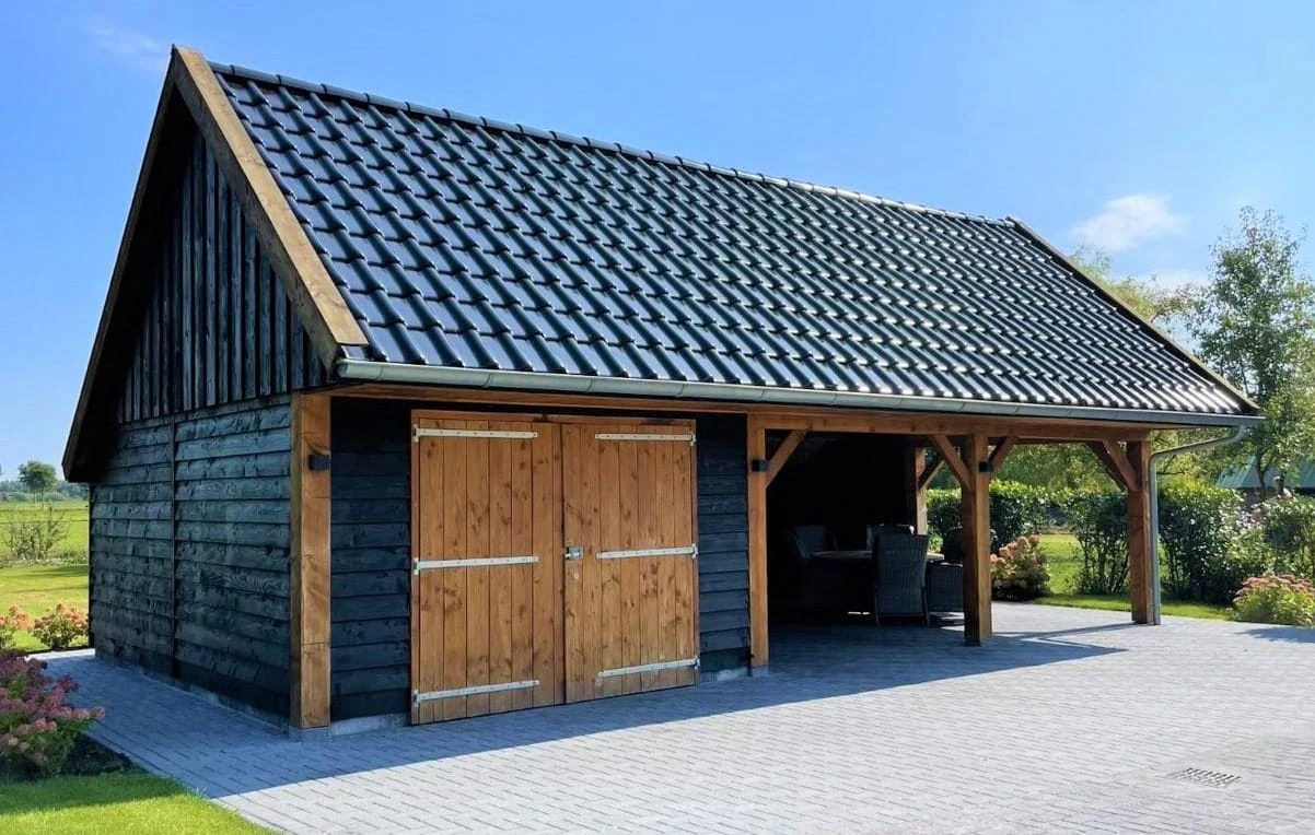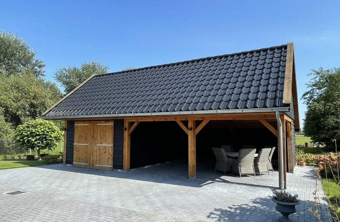 Een solide en karaktervolle kapschuur die functionaliteit en uitstraling combineert.