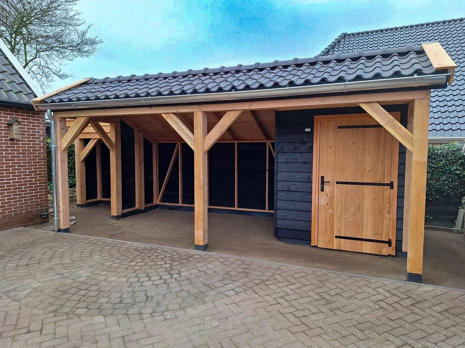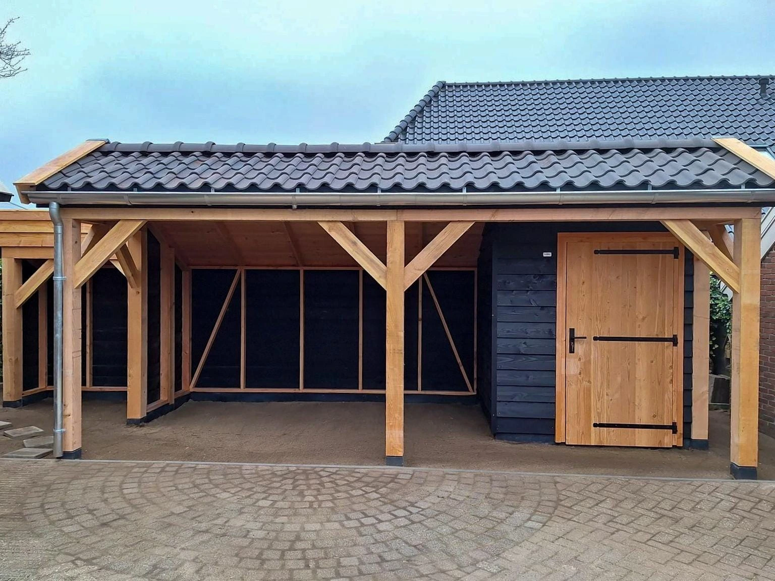 Deze Drentse kapschuur kenmerkt zich door zijn compacte en praktische indeling met een twee-delige dakopbouw. De maatvoering maakt het model geschikt voor situaties waar functionaliteit en uitstraling in balans moeten zijn.