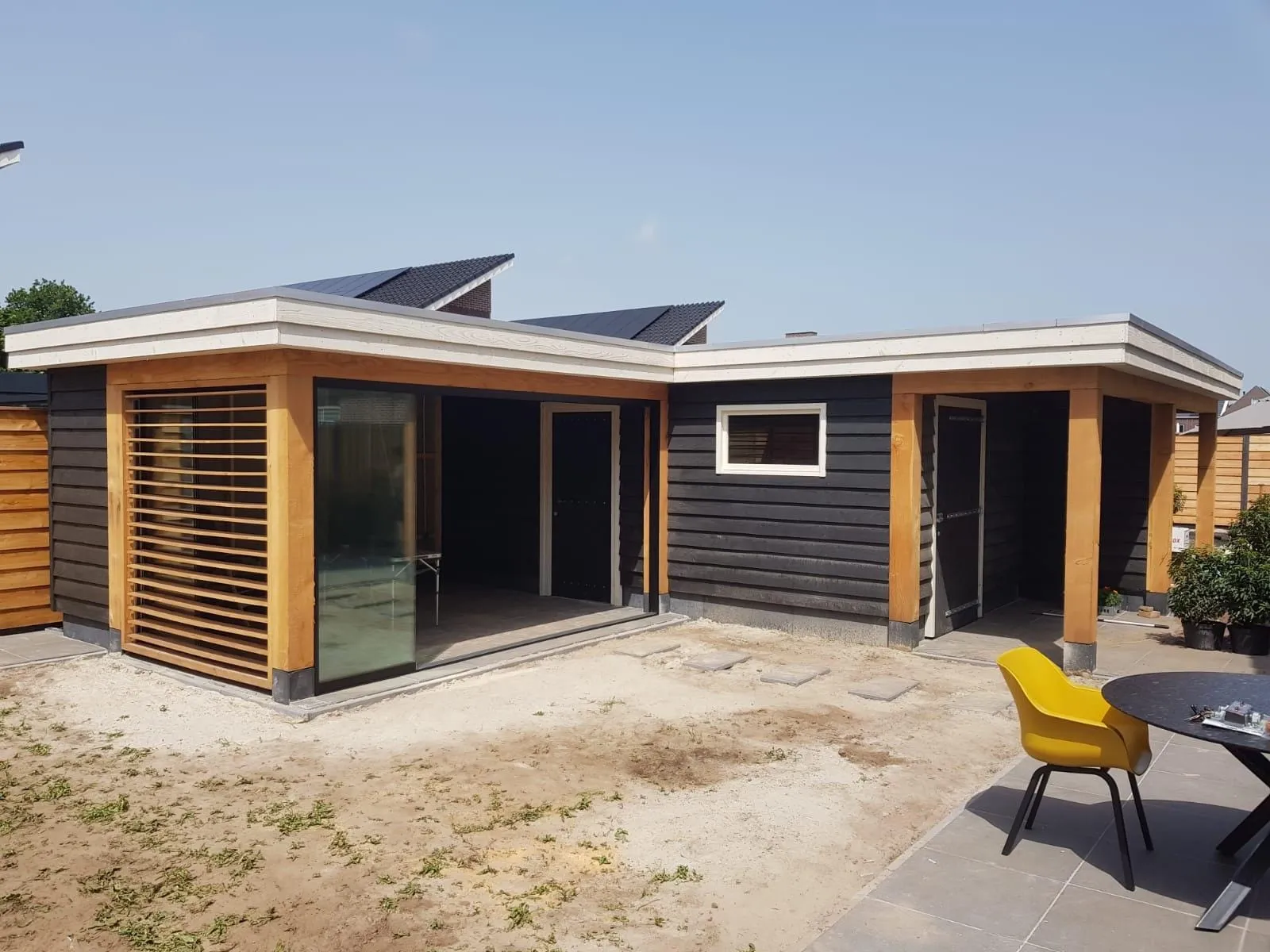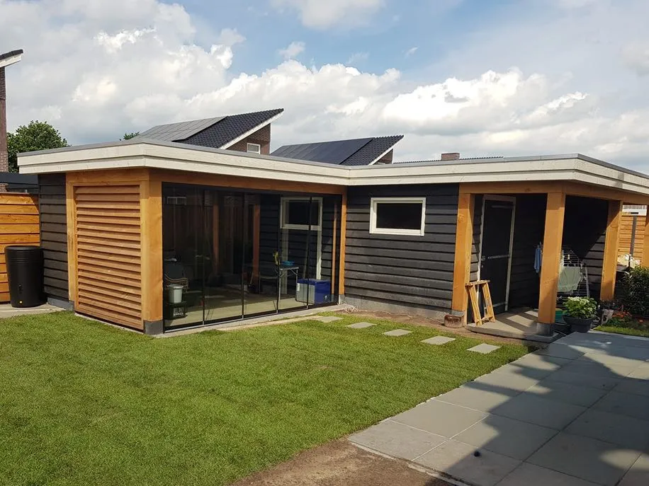 Klassieke schuur platdak L-vorm
